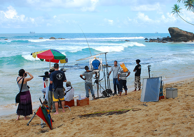 In Sri Lanka, filming centered mostly around Galle, a beach side town in Southern Sri Lanka which boasts a Dutch Fort which is a UNESCO World Heritage site. Various scenarios such as a market scene, stilt fishing and an elaborate Sri Lankan wedding were set up by our local production team. The local crew consisted of an assistant director, art director, wardrobe and makeup, casting director, grip, gaffer and their respective teams.
